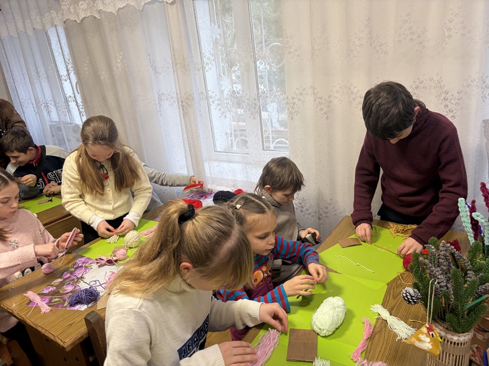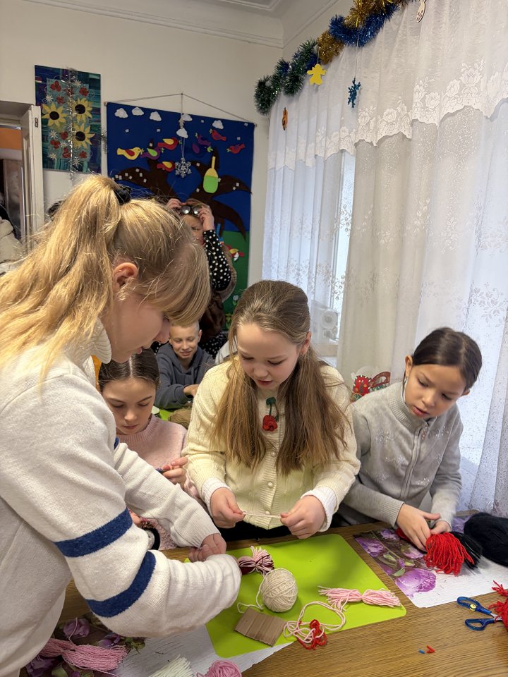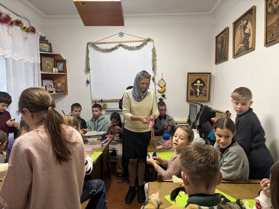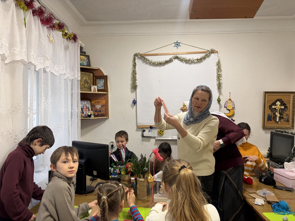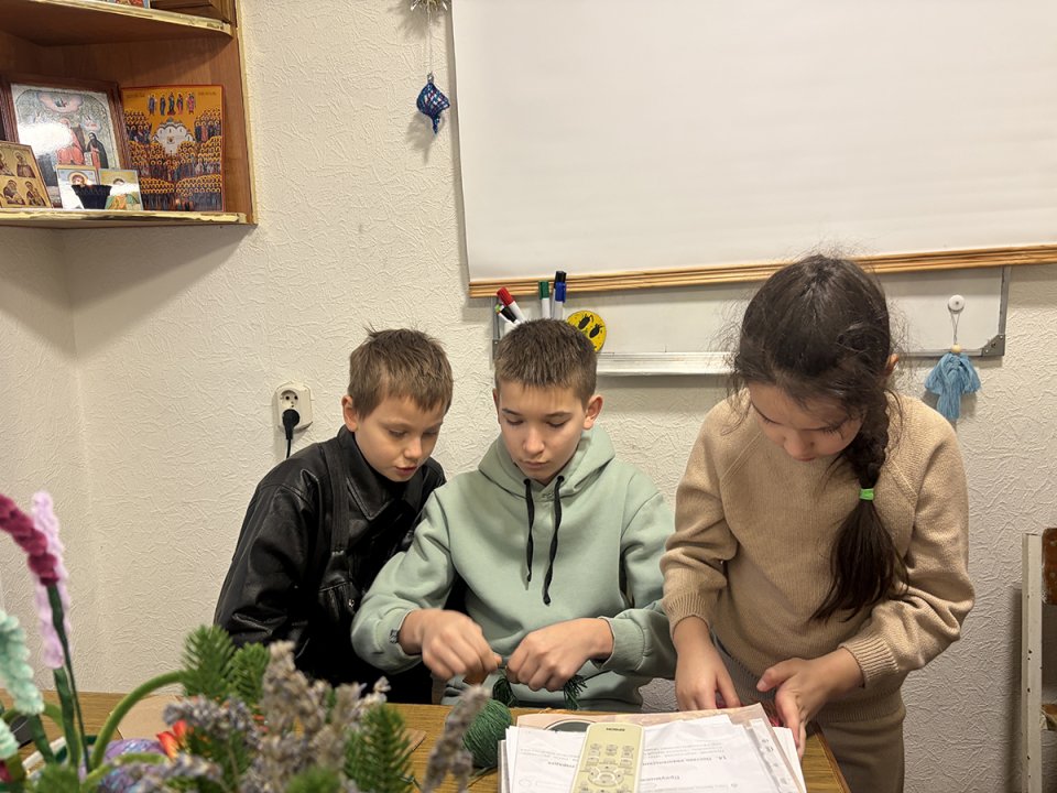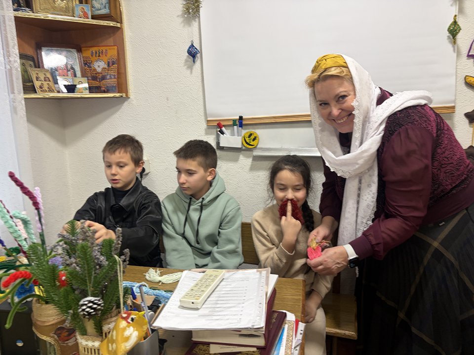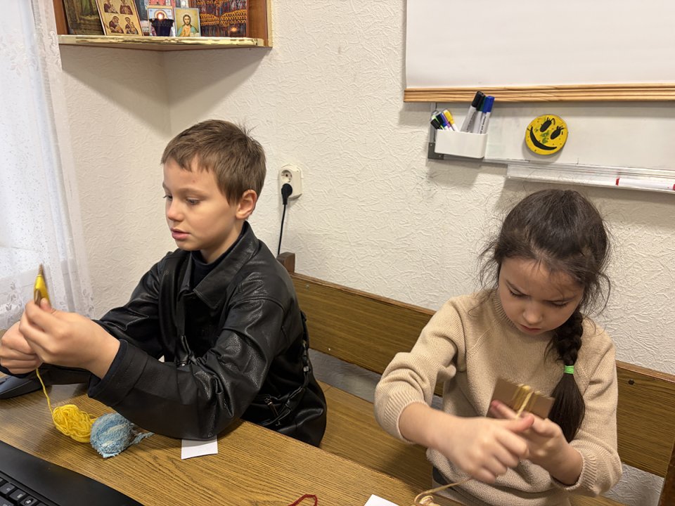 В первую очередь прибывших гостей ожидал увлекательный мастер-класс по рукоделию. В совместной работе с учащимися воскресной школы храма Всех Святых ребята научились делать чудесных птичек из пряжи. Работа кипела ежеминутно – трудились как дети, так и родители с педагогами.