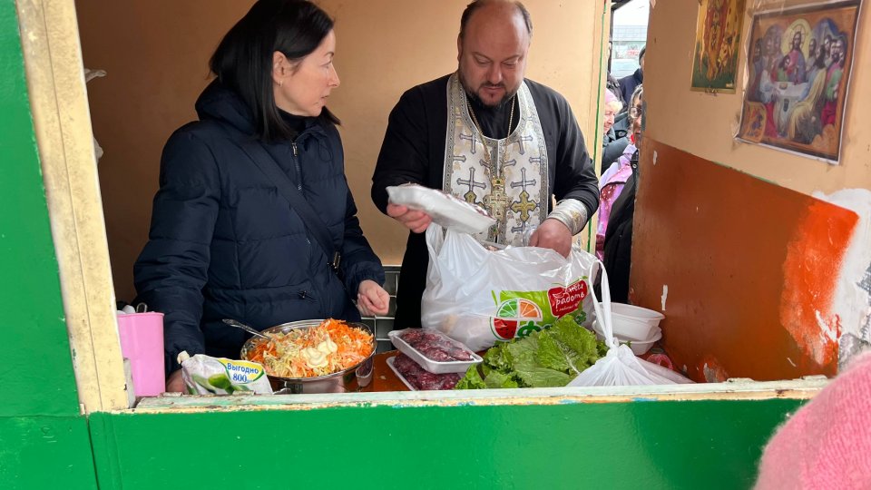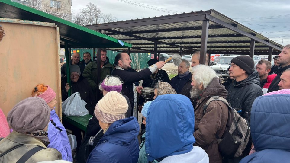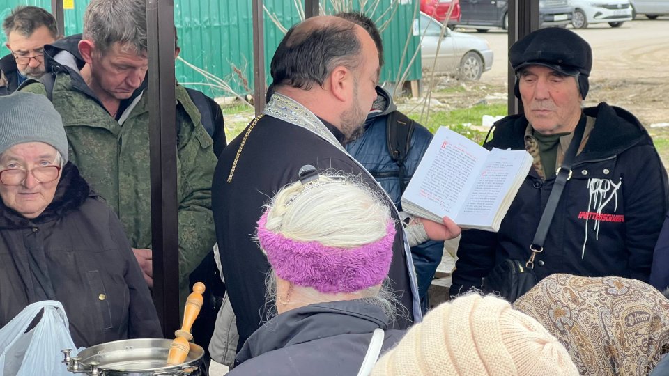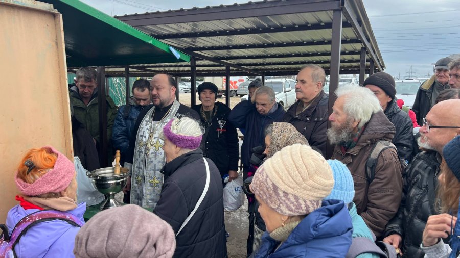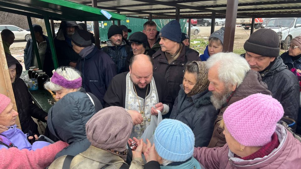 Отец Игорь отслужил молебен, окропил всех святой водой, сказал слово проповеди по воскресному Евангелию, побеседовал с людьми, некоторым помог материально. Не обошлось и без вкусняшек: батюшка привез вареные яйца, бутерброды, конфеты.