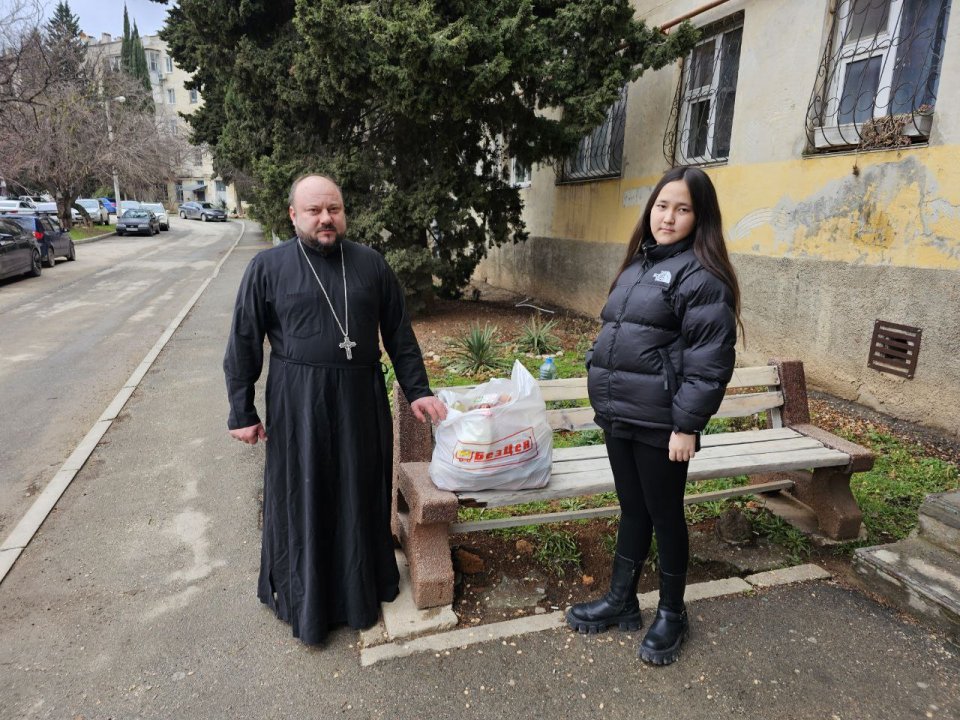 Приход храма святителя Спиридона Тримифунтского и его настоятель, иерей Игорь Крылов, неоднократно отказывали помощь нуждающимся, многодетным севастопольским семьям. Вот и в минувшее воскресенье, 8 февраля, отец Игорь привез помощь двум таким семьям. В данной помощи приняла участие одна благочестивая семья: она передала отцу Игорь часть средств, на которые, сложившись, были закуплены продукты питания: куры, овощи , фрукты, крупы, макаронные изделия, масло, яйца и др.