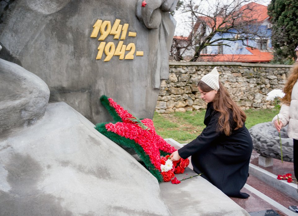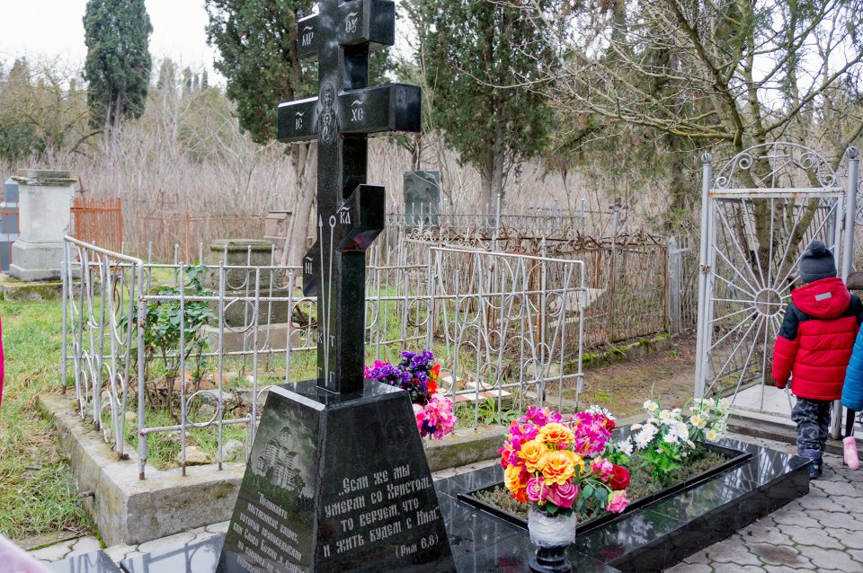Далее ребята отправились прогуляться по территории храма: посетили могилу протоиерея Владимира Карпец, который длительное время являлся благочинным Севастопольского округа, и Братскую могилу 1941-1942 гг., где почтили память воинов и возложили цветы.