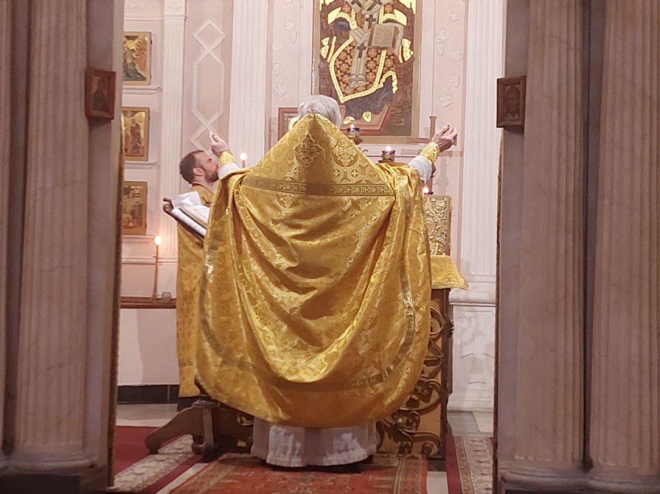 Субботняя Литургия в храме первоверховных апостолов Петра и Павла и проповедь о лицемерии и милостыне