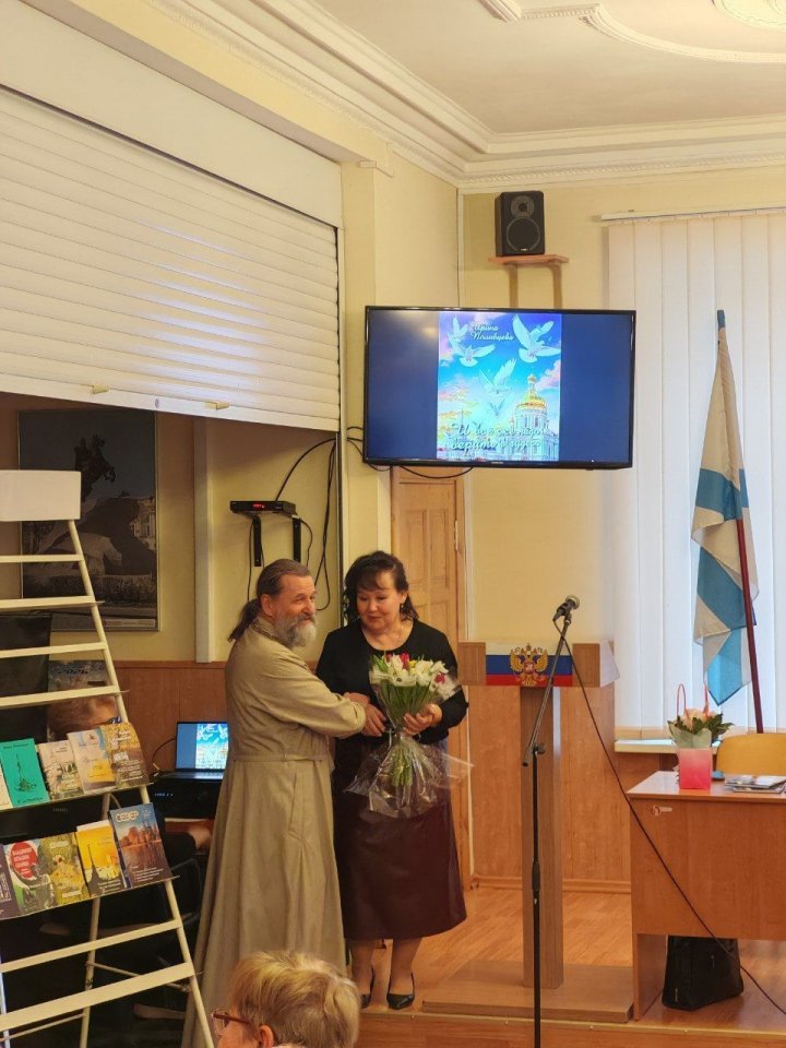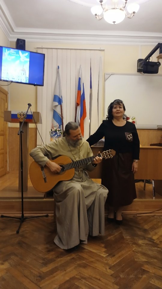 Завершился вечер песней на стихи Поливцевой Ирины музыку А. Базанова, «Ждущая» в исполнении дуэта, отца Сергия и Ирины Поливцевых. Свои книги «И все же надо верить в чудеса» Поливцева Ирина подарила в фонд Морской библиотеки, а также всем выступающих на вечере.