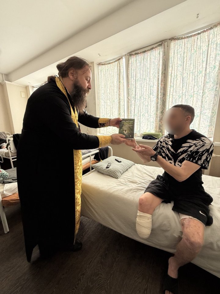 Те же выздоравливающие, кто готовился ко Святому Причащению, исповедовались и причастились Святых Христовых Таин, а временно недвижимым воинам, по традиции, был преподан лучший подарок – книга!