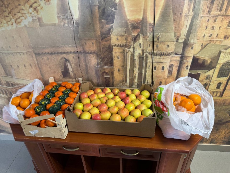 Подарками же для детей стали сладкие фрукты.