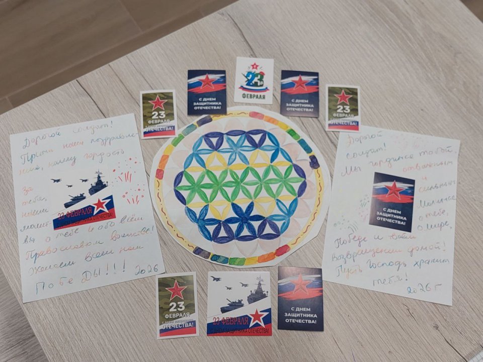 Ученики нашей воскресной школы не устают готовить поздравления для раненых воинов! Рисуют и пишут письма, а главное – молятся о выздоровлении всех солдат и возвращении их домой!