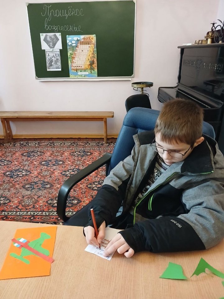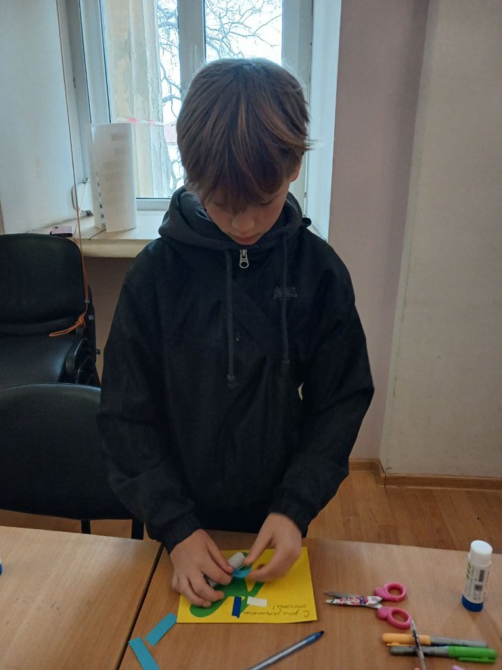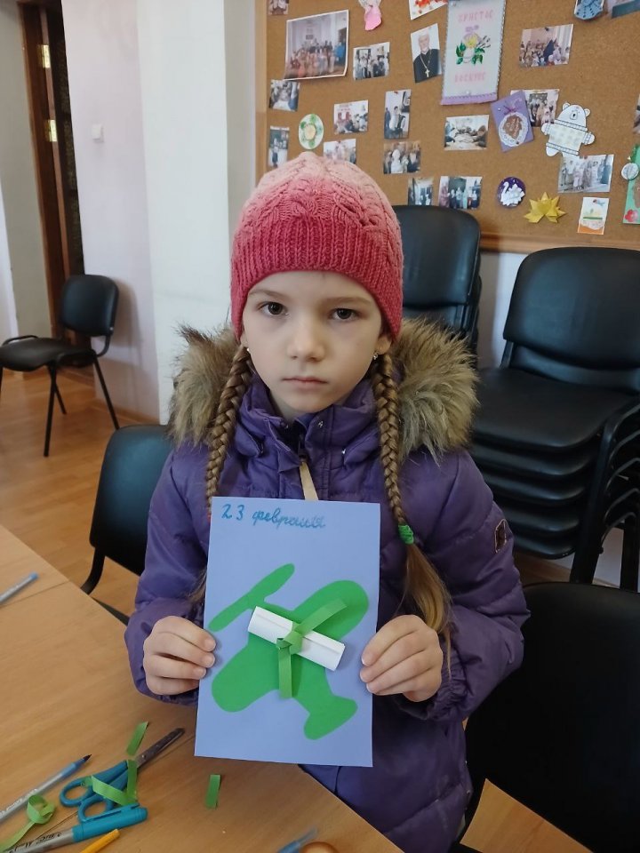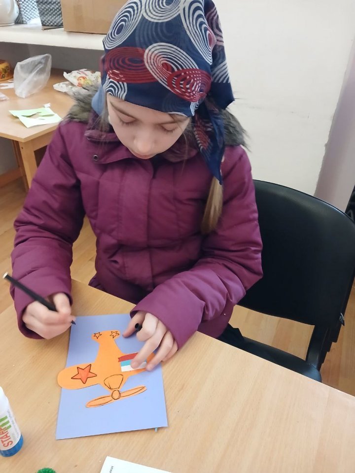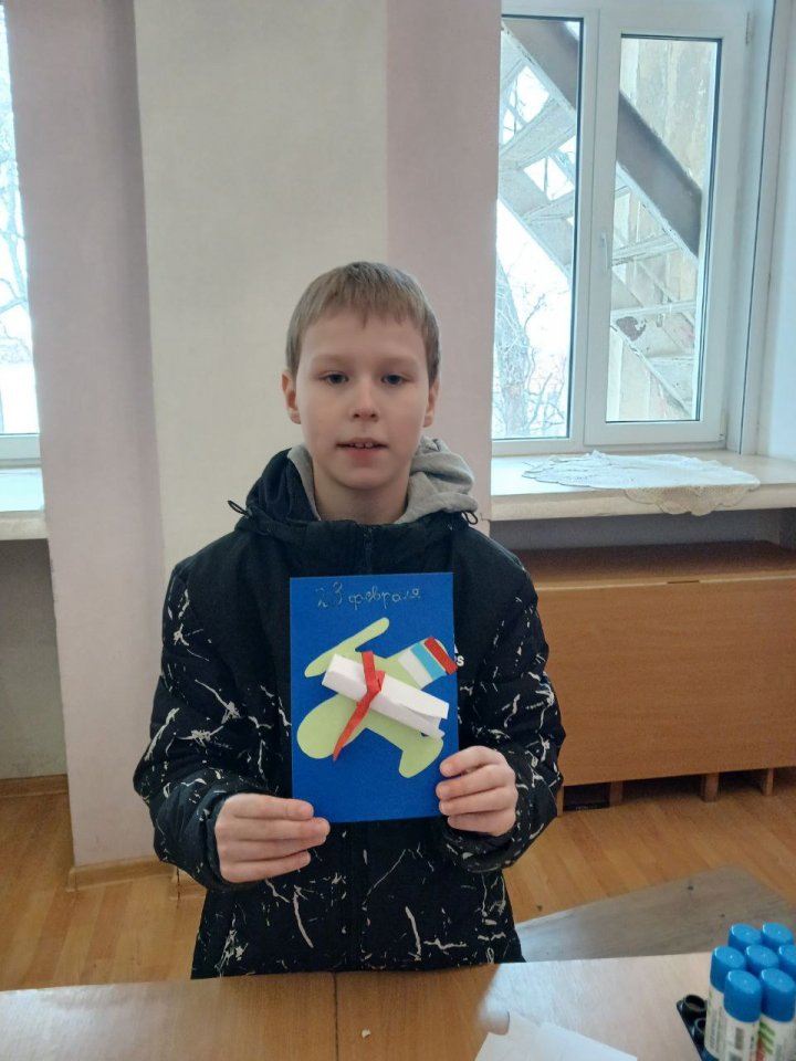 По окончании теоретической части ученики рисовали и клеили открытки для своих пап, чтобы 23 февраля поздравить их с днем Защитника Отечества.