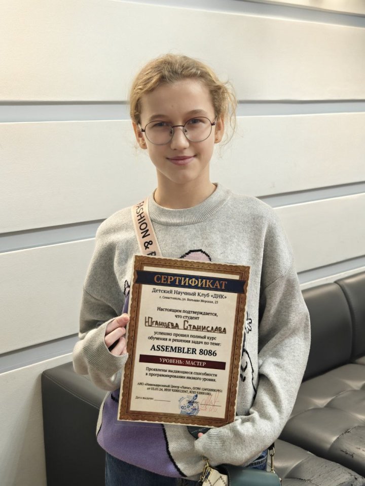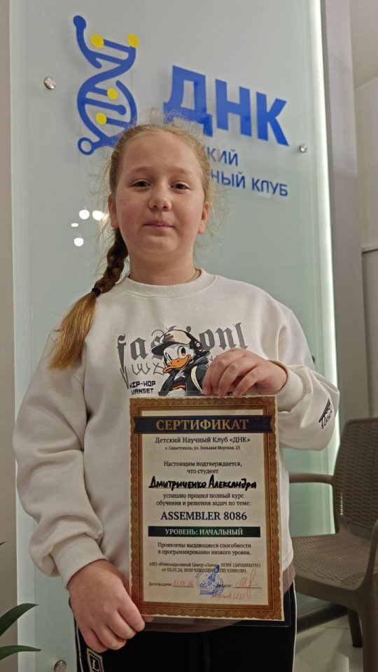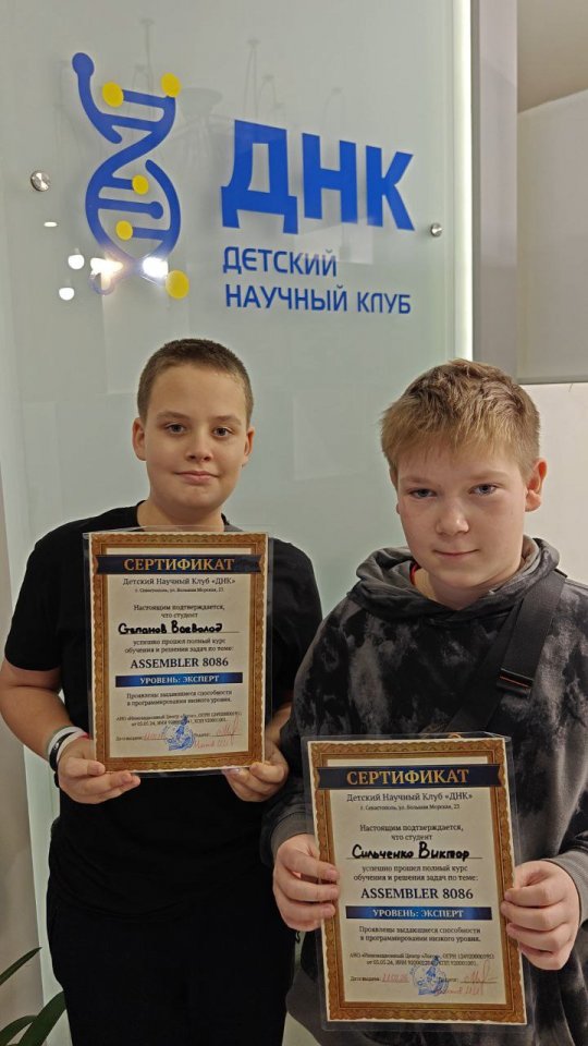 - Освоили логику и язык машин: вспомнили базовые законы логики и математики, применили их на практике и погрузились в основы программирования. Наши воспитанники сдали экзамены и получили сертификаты разных уровней (от «начального» до «мастера») за понимание сурового, но честного ассемблера - ASM8086.
