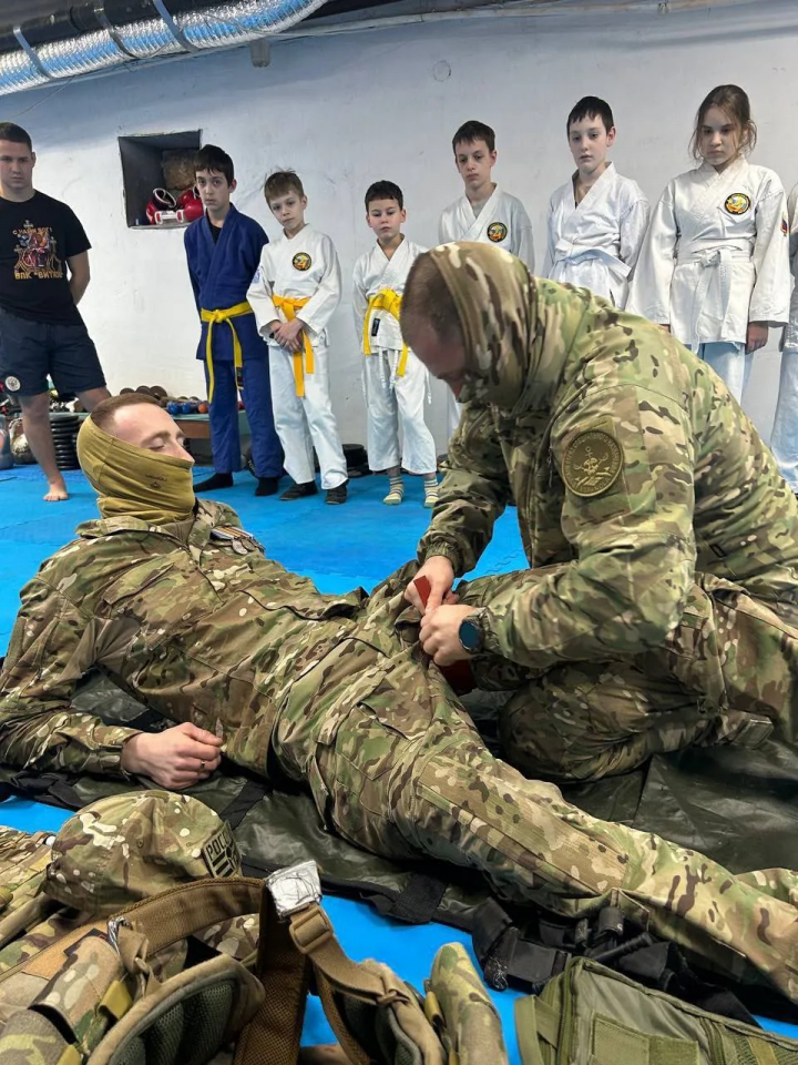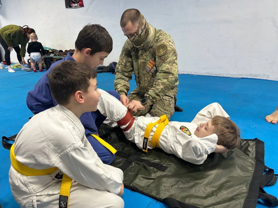 В православном военно-патриотическом клубе «Витязь» при Духовно-просветительском центре Центрального благочиния прошли занятия по тактический медицине. Участники СВОнаучили ребят оказанию первой медицинской помощи, переноске раненого на себе, так же показали элементы тактической подготовки.