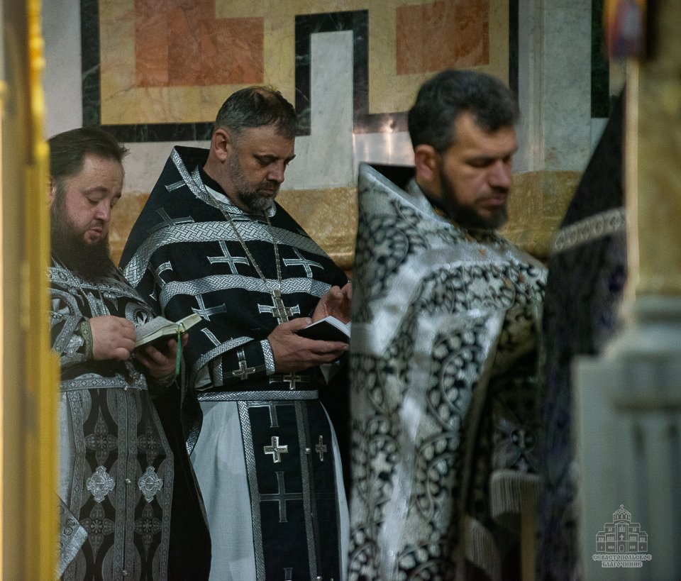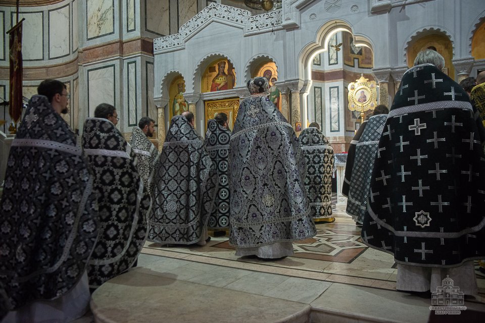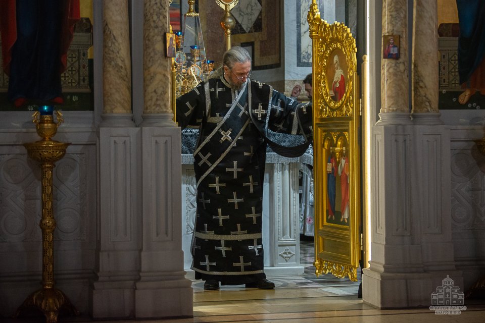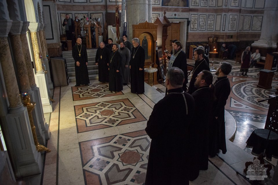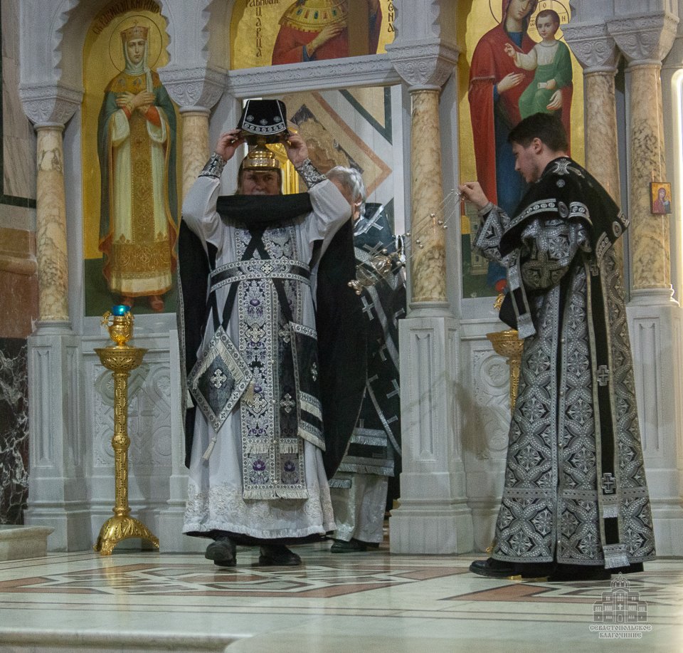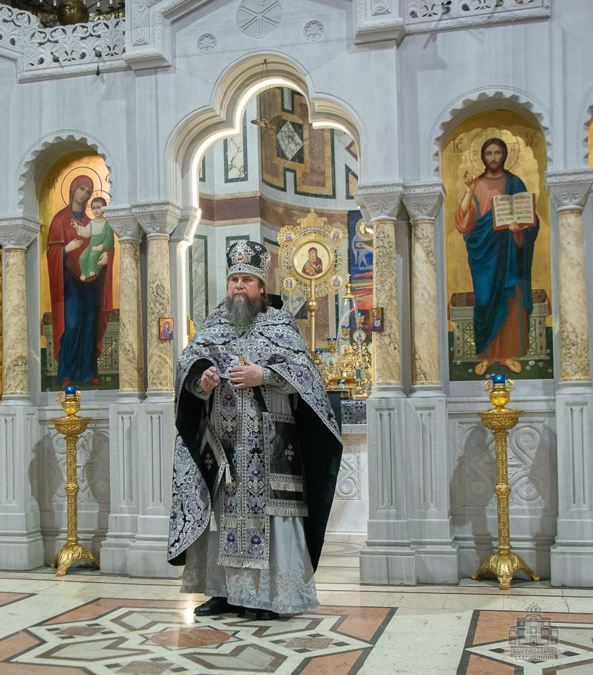 04 марта в среду второй седмицы Великого поста во Владимирском соборе-усыпальнице адмиралов клирики Центрального благочиния совершили соборную Божественную Литургию Преждеосвященных Даров. Ее возглавил благочинный Центрального церковного округа протоиерей Сергий Халюта. По благословению Митрополита Симферопольского и Крымского Тихона эта удивительная постовая служба по средам совершается в 18 часов вечера во всех храмах Митрополии. Такое решение было принято не случайно, в вечернее время помолиться за Литургией Преждеосвященных Даров смогут и люди, занятые утром и днем на работе, и не имеющие возможности помолиться за Великопостными службами, совершаемыми в утреннее время.