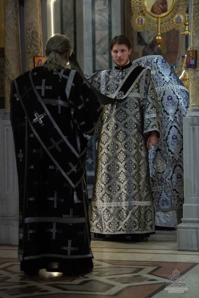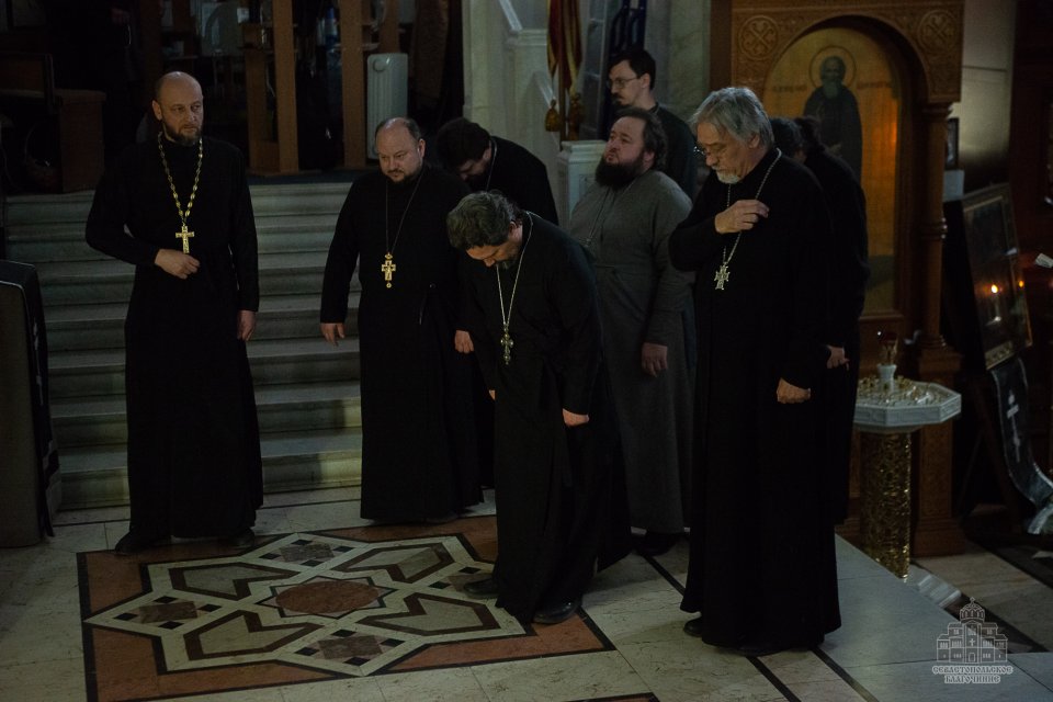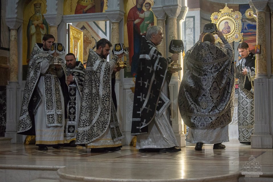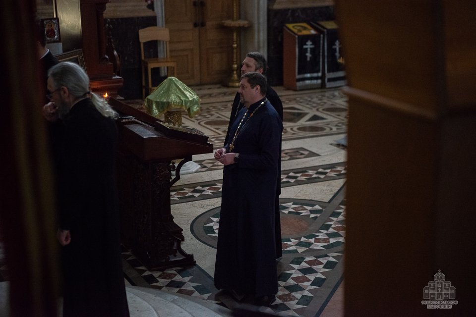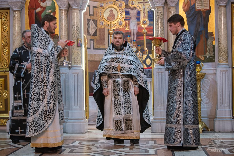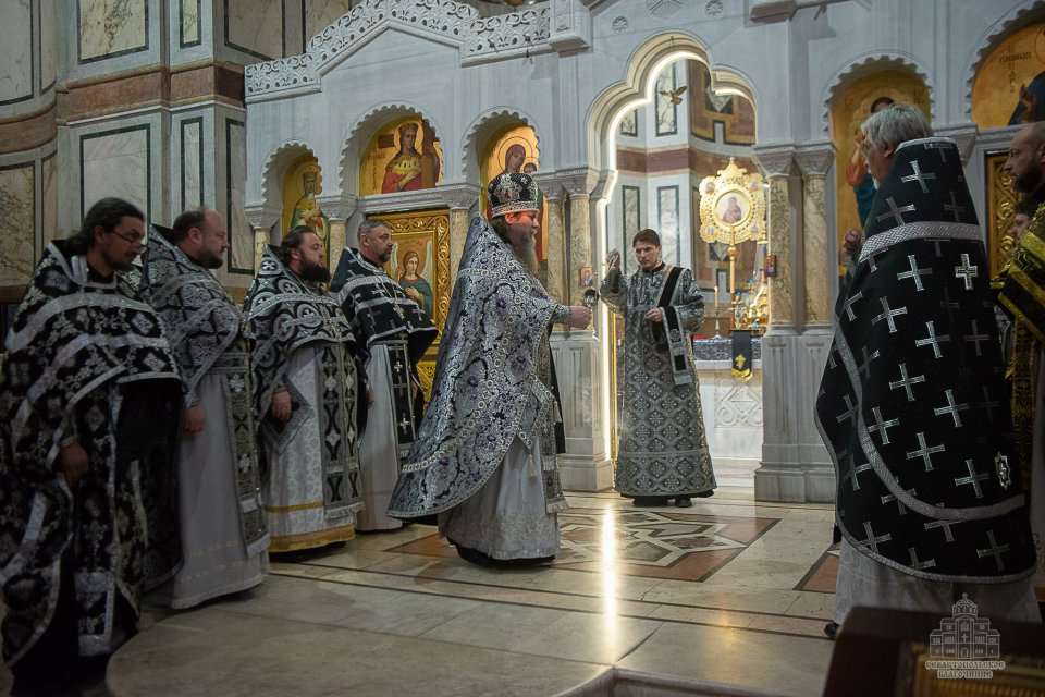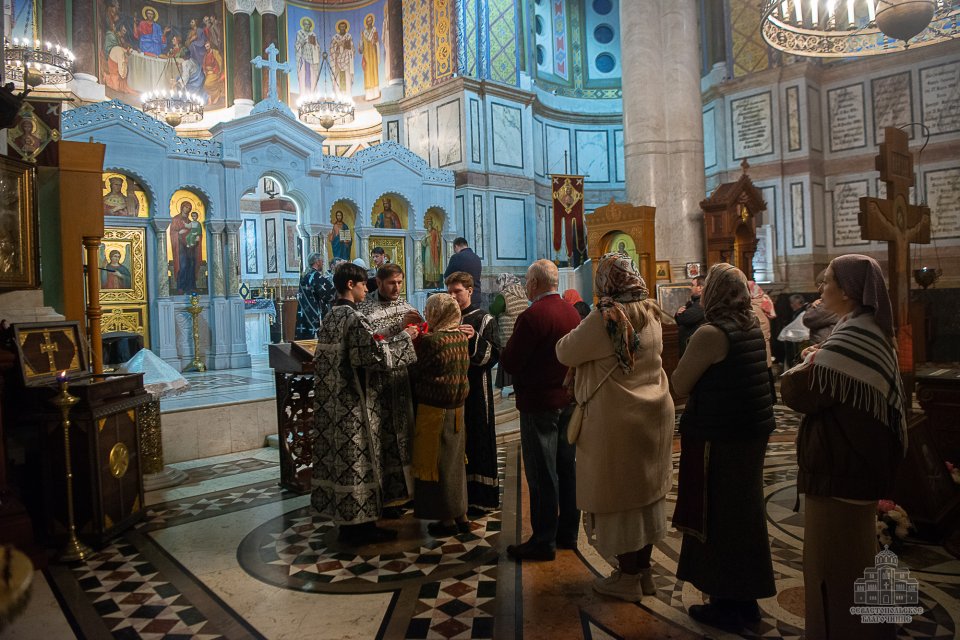 04 марта в среду второй седмицы Великого поста во Владимирском соборе-усыпальнице адмиралов клирики Центрального благочиния совершили соборную Божественную Литургию Преждеосвященных Даров. Ее возглавил благочинный Центрального церковного округа протоиерей Сергий Халюта. По благословению Митрополита Симферопольского и Крымского Тихона эта удивительная постовая служба по средам совершается в 18 часов вечера во всех храмах Митрополии. Такое решение было принято не случайно, в вечернее время помолиться за Литургией Преждеосвященных Даров смогут и люди, занятые утром и днем на работе, и не имеющие возможности помолиться за Великопостными службами, совершаемыми в утреннее время.