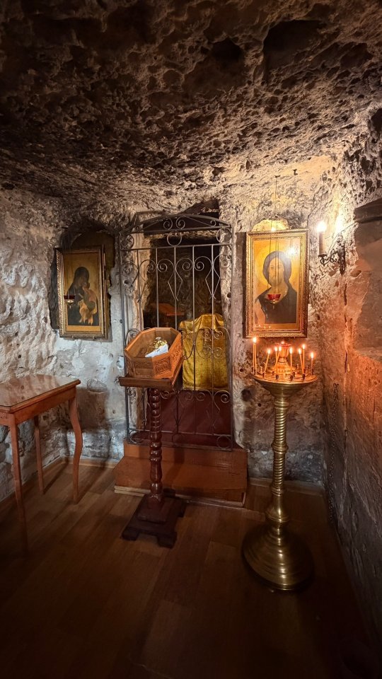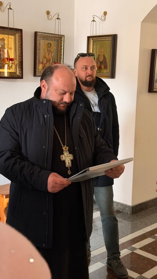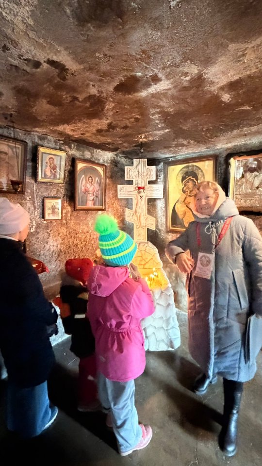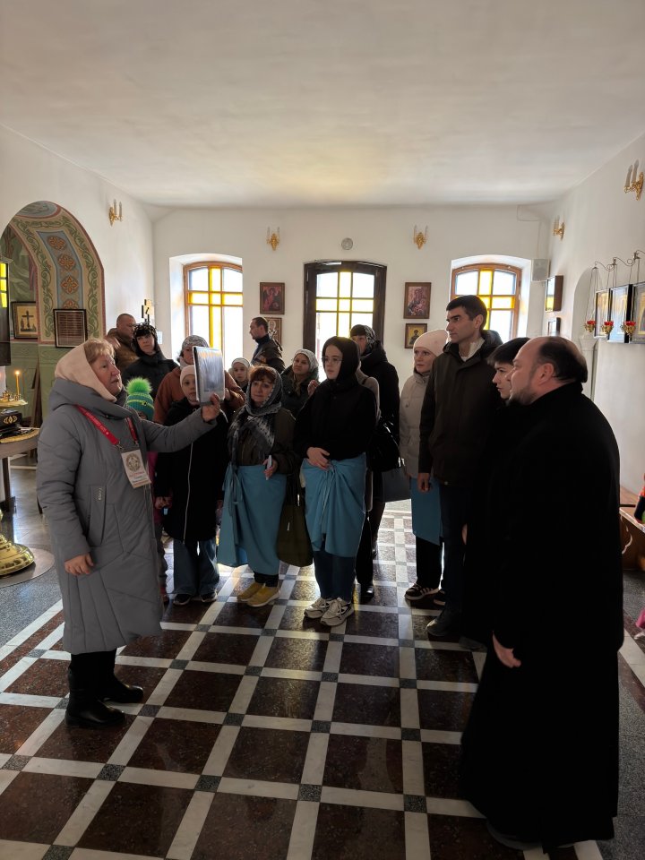 Гостей тепло встретил наместник монастыря, для паломников была проведена обширная экскурсия по пещерным храмам монастыря, а так же храму Святой Троицы и великомученика и целителя Пантелеимона. Гости имели возможность приложиться к святыням монастыря, помолиться у святых мощей и икон.
