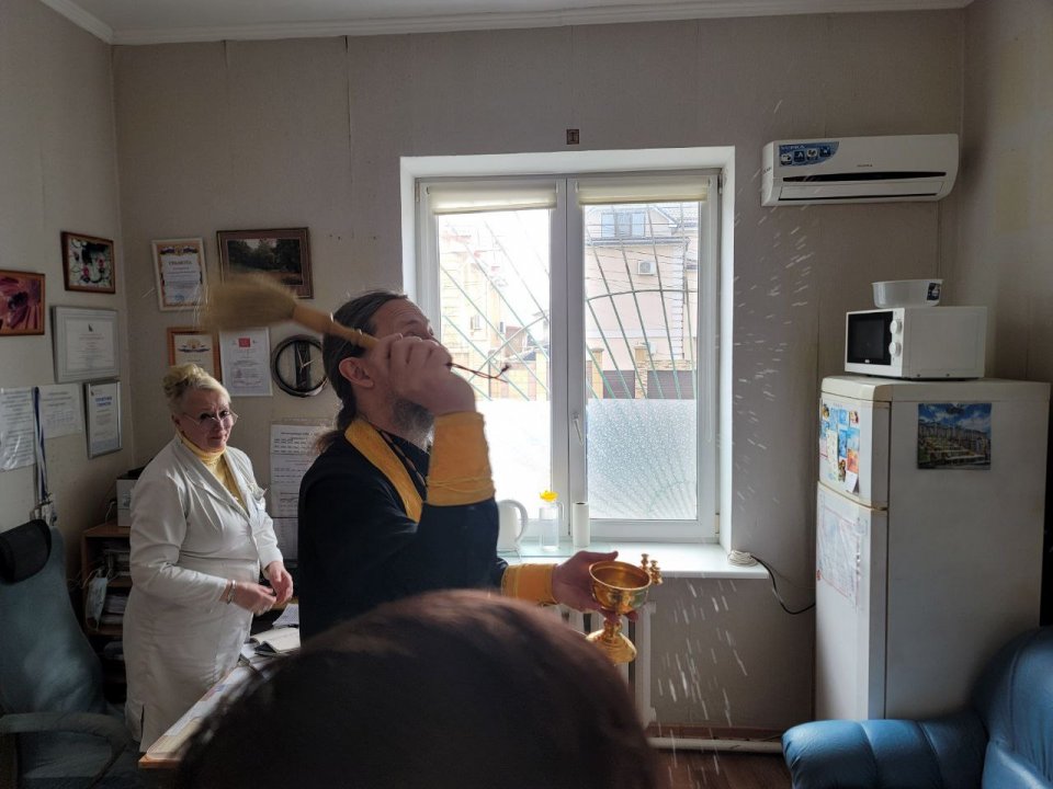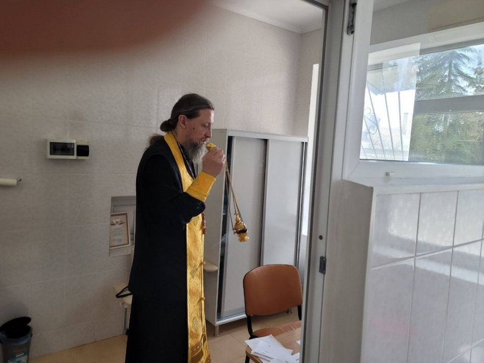 6 марта настоятель храма в честь иконы Божией Матери «Всех скорбящих Радость» протоиерей Дмитрий Алешкевич посетил Городскую инфекционную больницу г. Севастополя. Священник освятил ВИЧ-отделение и провел беседу с медперсоналом, рассказал им об основах христианской жизни и важности участия в церковных таинствах.