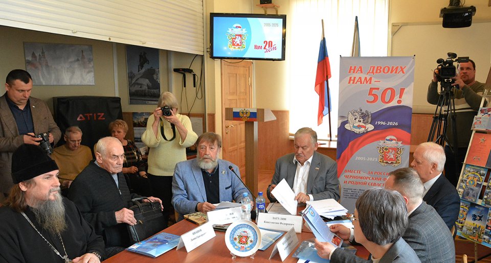 С приветствием от имени губернатора Севастополя на заседании выступил член Правительства города-героя Сергей Бездольный. Выступили: благочинный Центрального церковного округа г. Севастополя протоиерей Сергий Халюта, бывший член Совета Федерации от Севастополя, исполнитель авторских песен Андрей Соболев, член Общественной палаты Севастополя вице-адмирал Сергей Авраменко, генерал-полковник профессор Леонид Ивашов, уполномоченная по правам ребенка в г. Севастополе Марина Песчанская, советник ВРИО представителя Представительства МИД РФ в Симферополе Дмитрий Петров, депутат Законодательного Собрания Севастополя полковник Сергей Колбин, член Союза журналистов России Реджис Трембли (США) и другие.