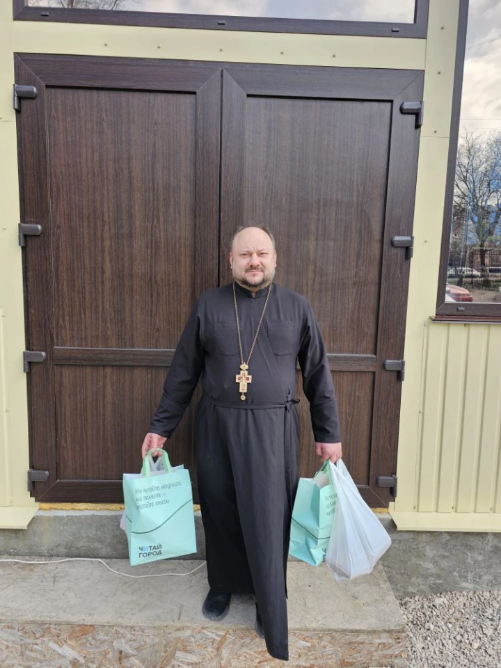 24 марта настоятель храма святителя Спиридона Тримифунтского иерей Игорь Крылов привез двум детям, пострадавшим в результате взрыва в доме на ул. Павла Корчагина и находящимся на лечении в отделении травматологии Детского больничного комплекса, книги и сладости.