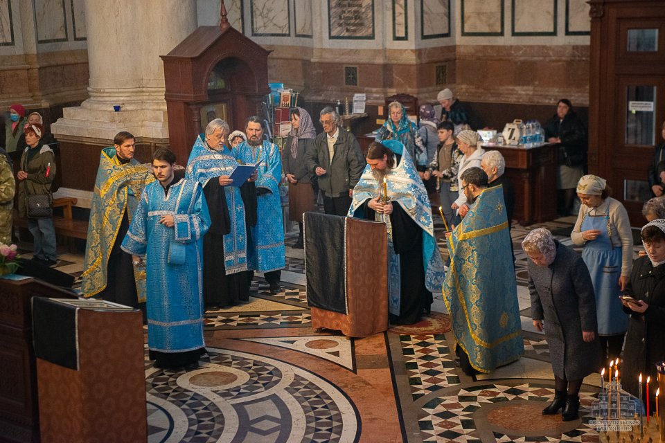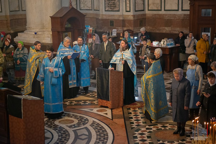 Вечерняя служба с чтением акафиста Пресвятой Богородице (Суббота Акафиста) во Владимирском соборе-усыпальнице адмиралов