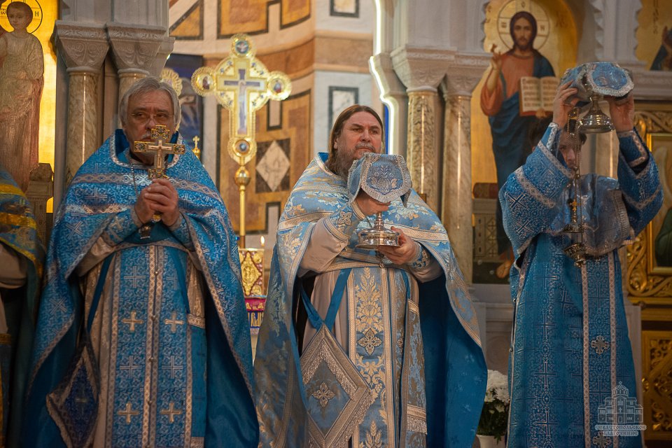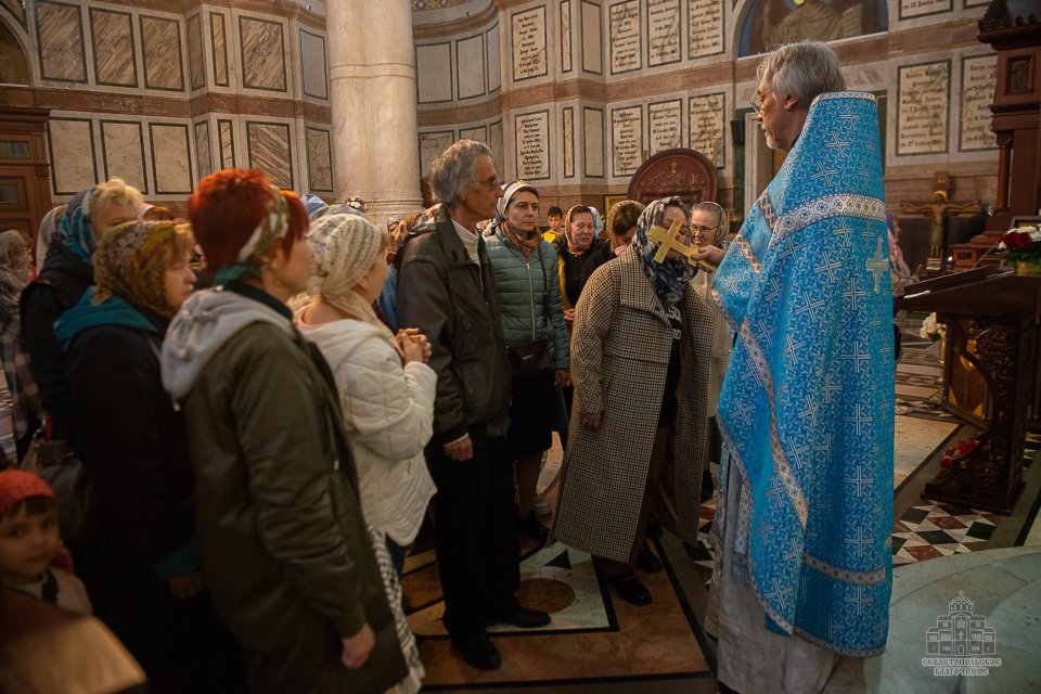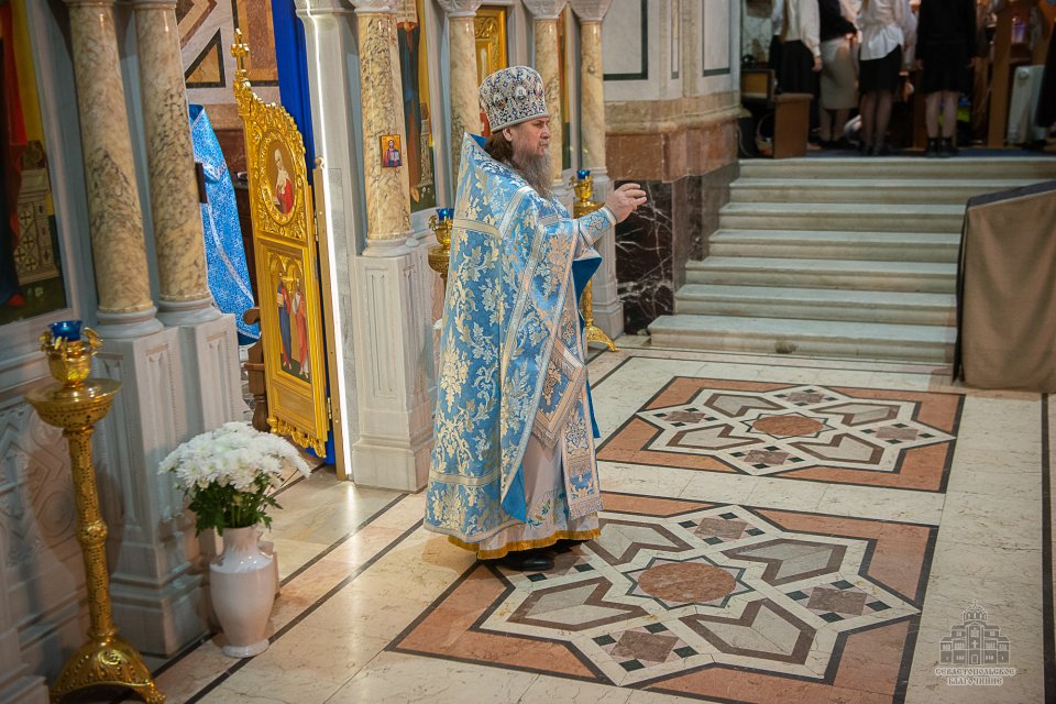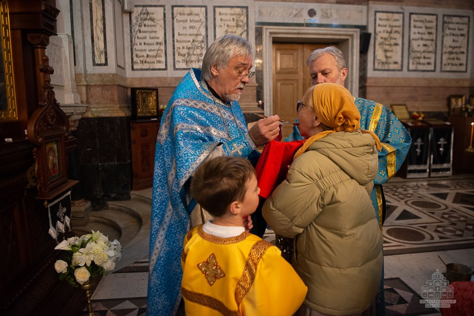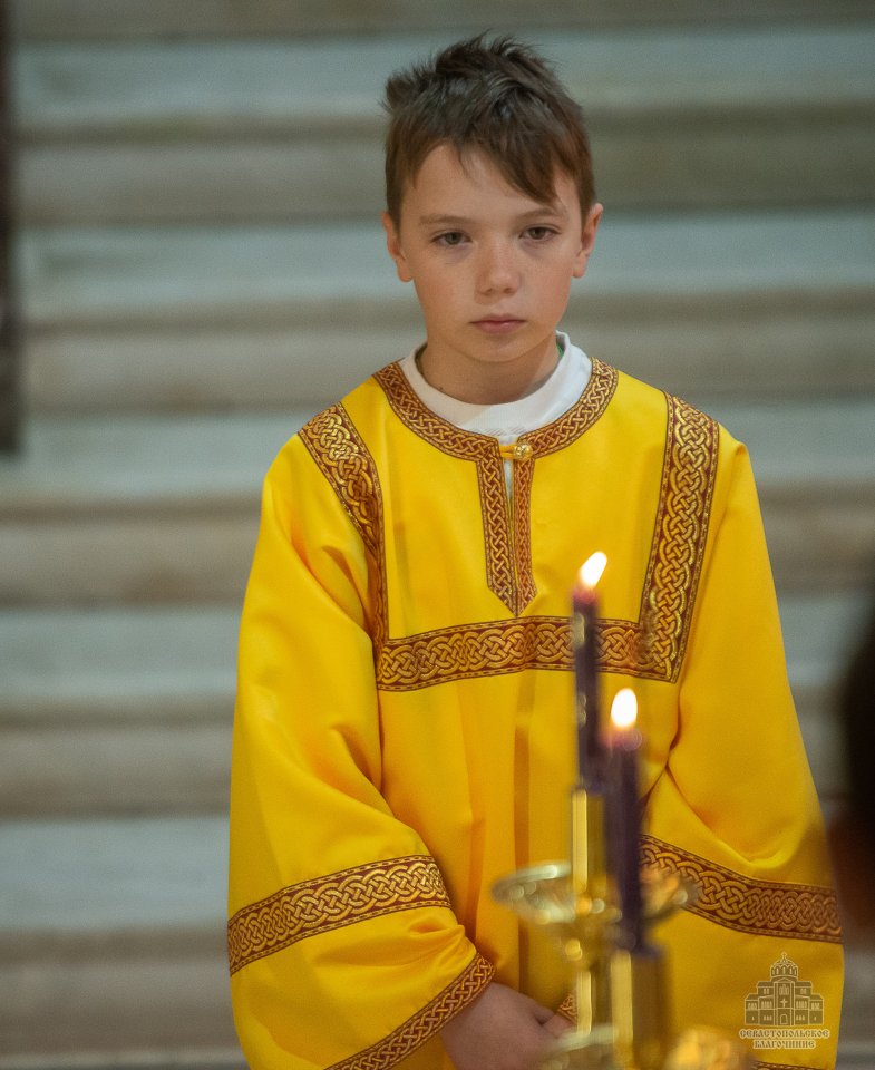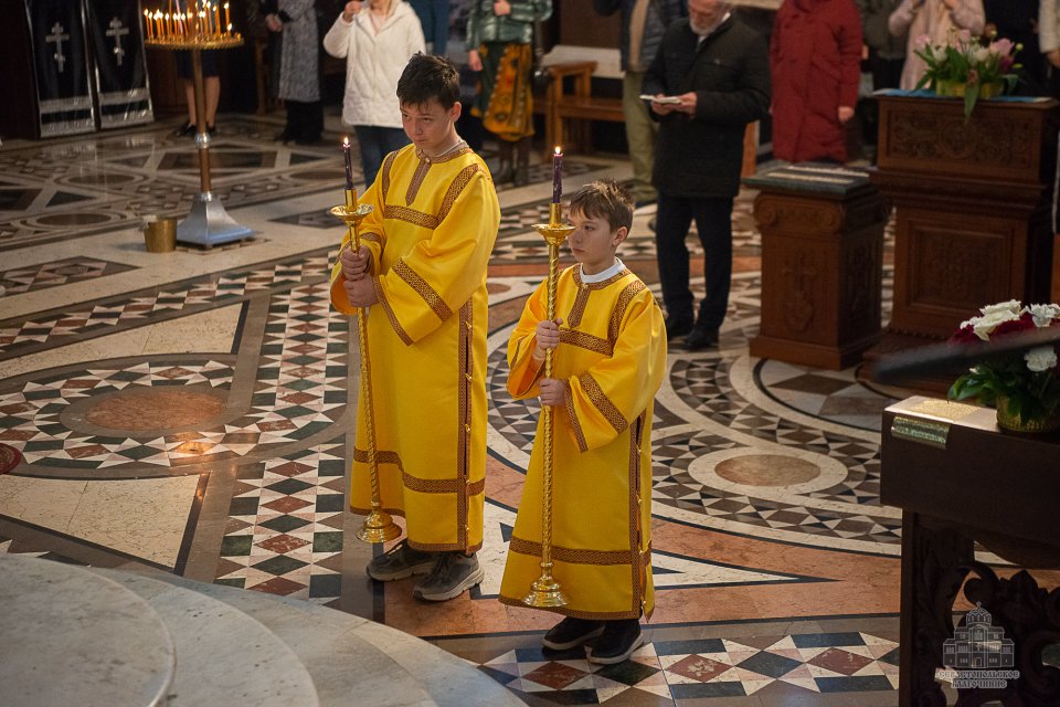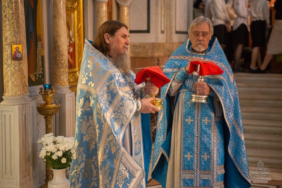 За богослужением, которое в сослужении духовенства возглавил настоятель собора - протоиерей Сергий Халюта, пел детский хор «Корсунь» собора (руководитель – Евгения Владимировна Тихова), а помогали священнослужителям в алтаре мальчики, которые проходят обучение в школе пономарей при соборе. Ребята очень старались, и все получилось очень достойно, благолепно и красиво. Хор создавал особую молитвенную атмосферу, которую прочувствовали верующие, пришедшие в храм помолиться.