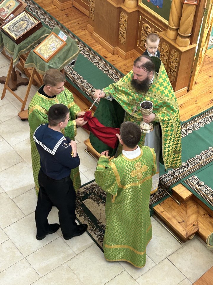 Апогеем праздника Входа Господня в Иерусалим явилась Божественная литургия в храме Святителя Филиппа, за которой, вместе с прихожанами, молились курсанты ЧВВМУ имени П.С. Нахимова. После соборного пения 33-го псалма были освящены вербы прихожан и гостей храма, а курсантов ожидала праздничная трапеза в воскресной школе.