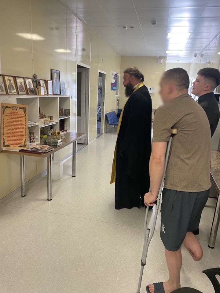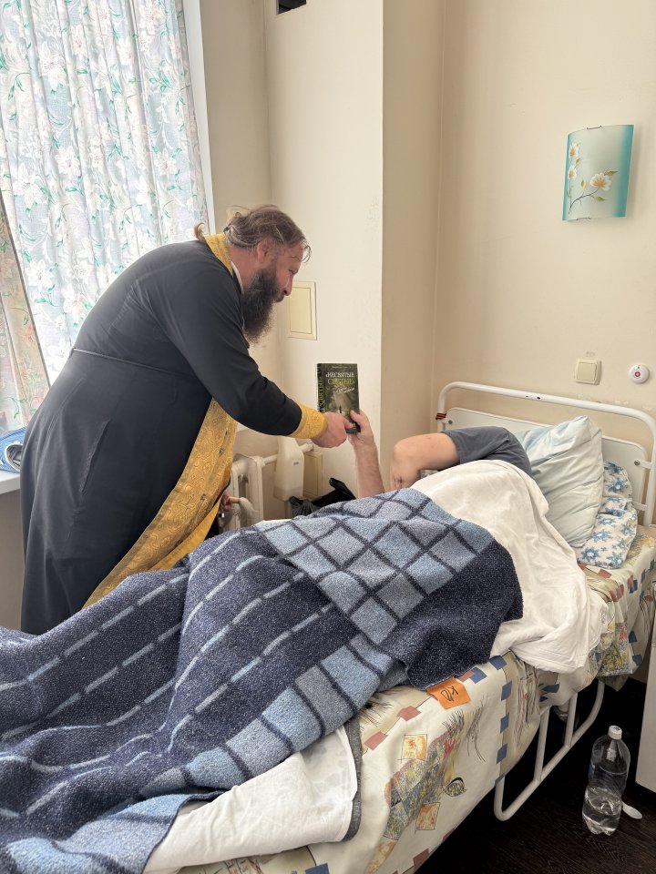 После Всенощного бдения настоятель храма Святителя Филиппа Московского иерей Николай Яковлев с помощником отправились в военный госпиталь, где каждому выздоравливающему воину было преподано слово проповеди о праздниках Лазаревой субботы и Входа Господня в Иерусалим. Каждый витязь был помазан целебным елеем и окроплён Крещенской водой. А временно недвижимым воинам был преподнесен «лучший подарок» –книга!