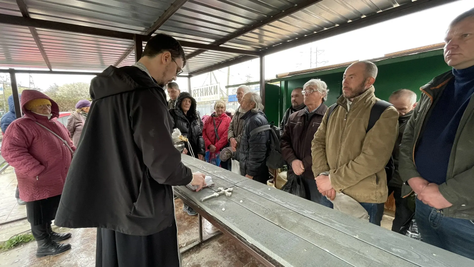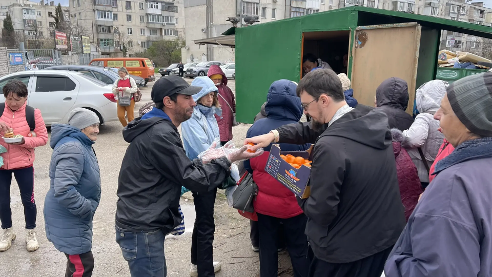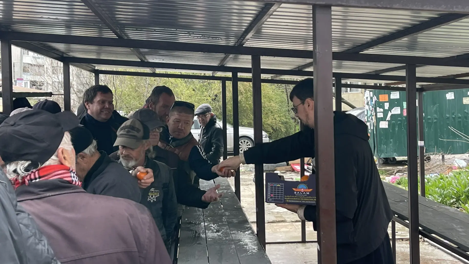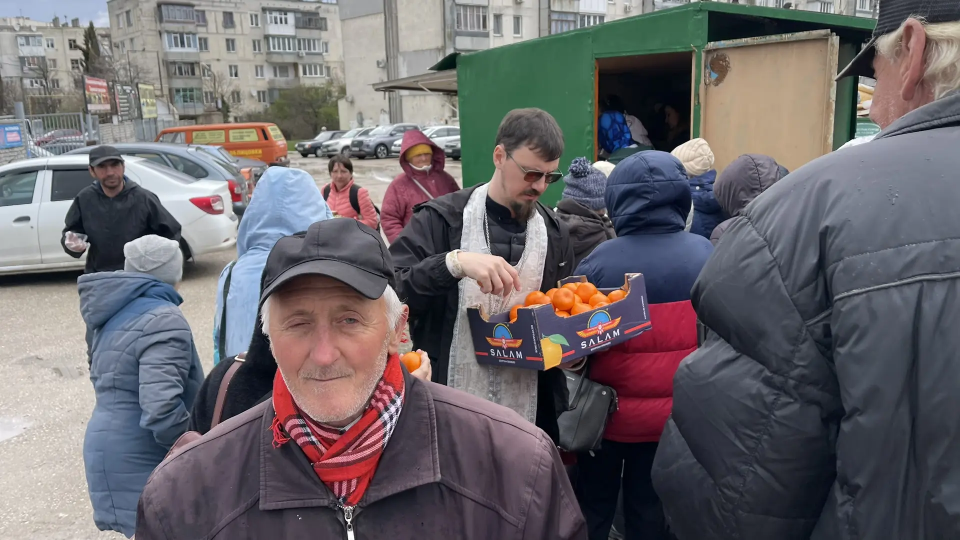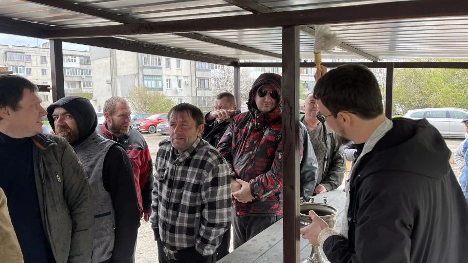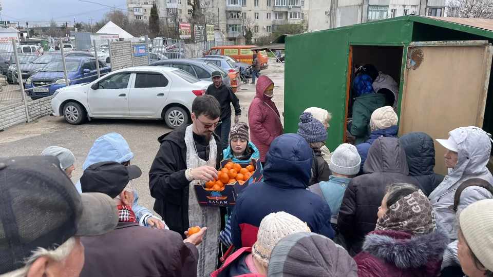 7 апреля, в праздник Благовещения Пресвятой Богородицы, настоятель храма блаженной Ксении Петерубургской иерей Арсений Иванченко снова приехал к нуждающимся. Батюшка отслужил молебен, окропил всех святой водой, сказал проповедь о празднике. Не обошлось и без угощения: батюшка раздал людям мандарины.