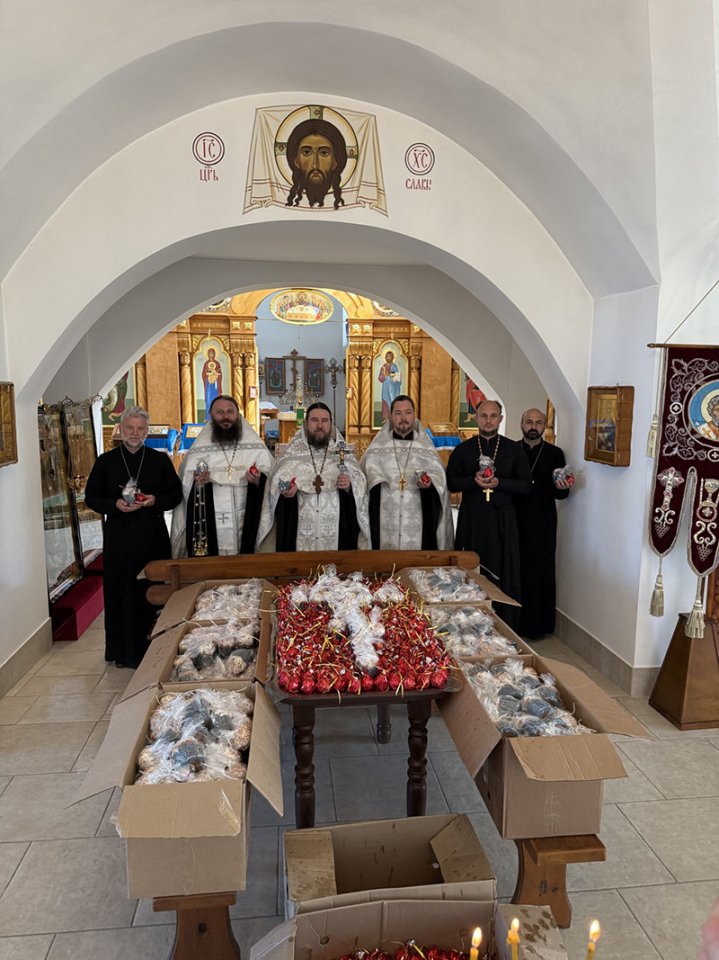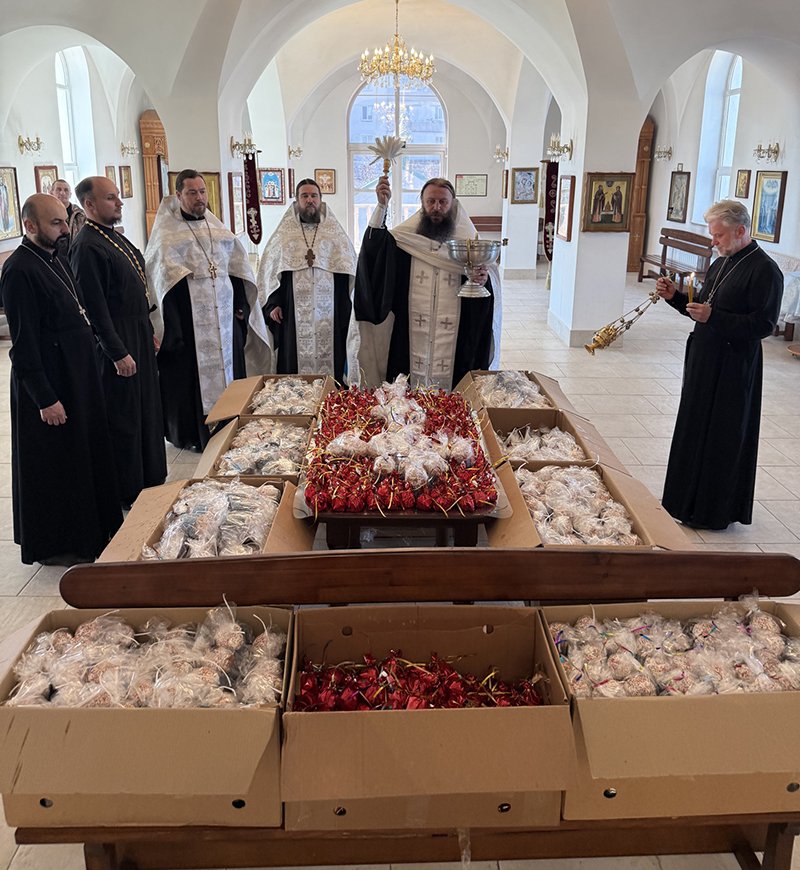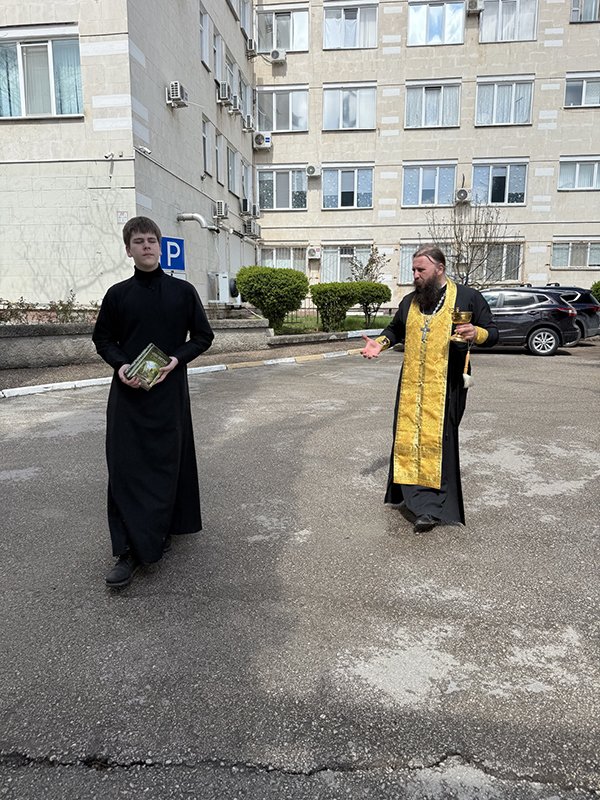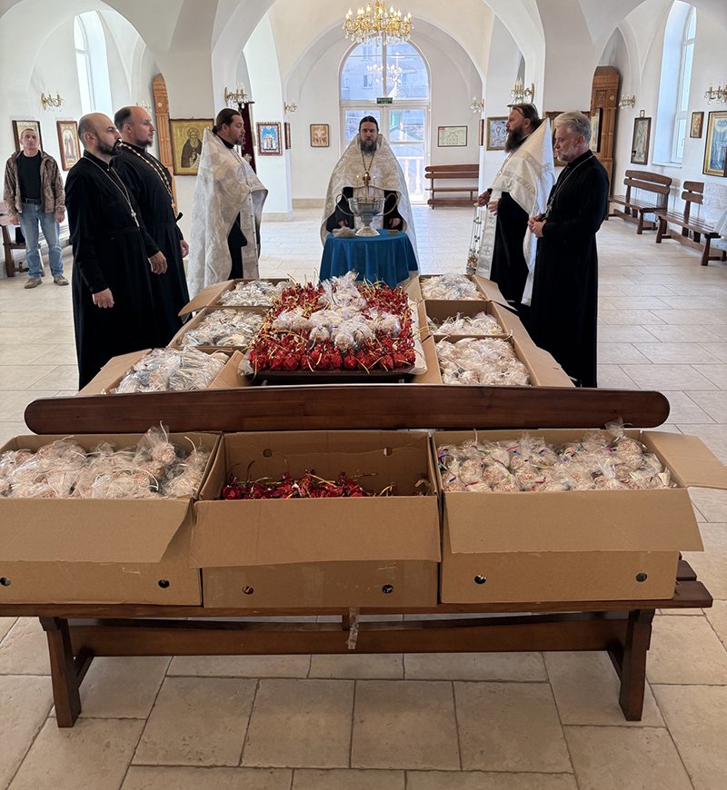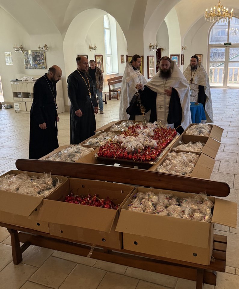 Ранним утром в Страстной Понедельник в храме Святителя Филиппа, Московского Московского, была совершена Божественная литургия Преждеосвященных Даров, после которой братия храма приготовлялась к встрече председателя военного отдела Крымской Митрополии, протоиерея Димитрия Короткова. В сослужении благочинного госпитального служения, старших священников военных госпиталей и настоятеля храма, отец Димитрий совершил чин освящения куличей и пасхальных даров, приготовленных по благословению Митрополита Симферопольского и Крымского Тихона, для последующего поздравления наших воинов на передовой и в госпиталях Крыма и Севастополя.