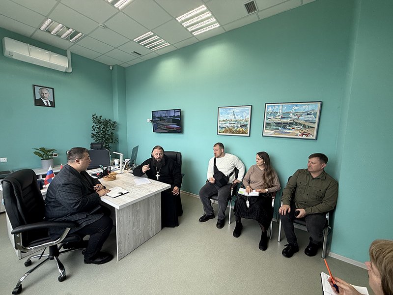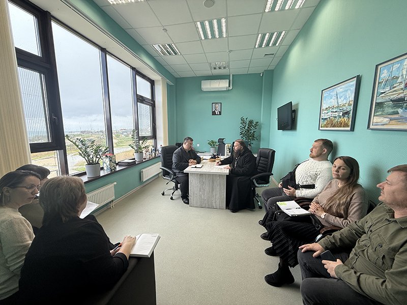 Клир же направился в Многофункциональный культурный центр "Бухта Казачья", где было проведено рабочее совещание по организации Пасхального и престольного торжеств в Казачьей бухте.