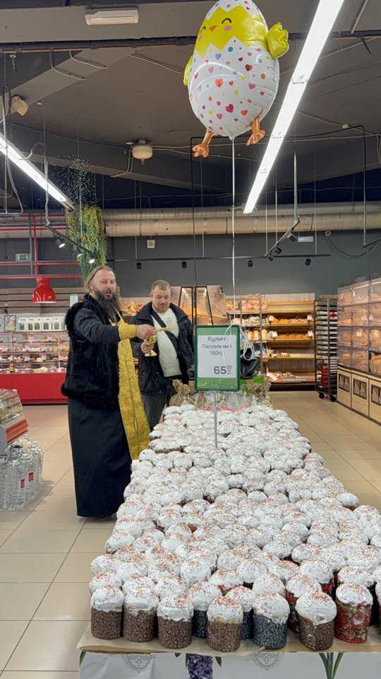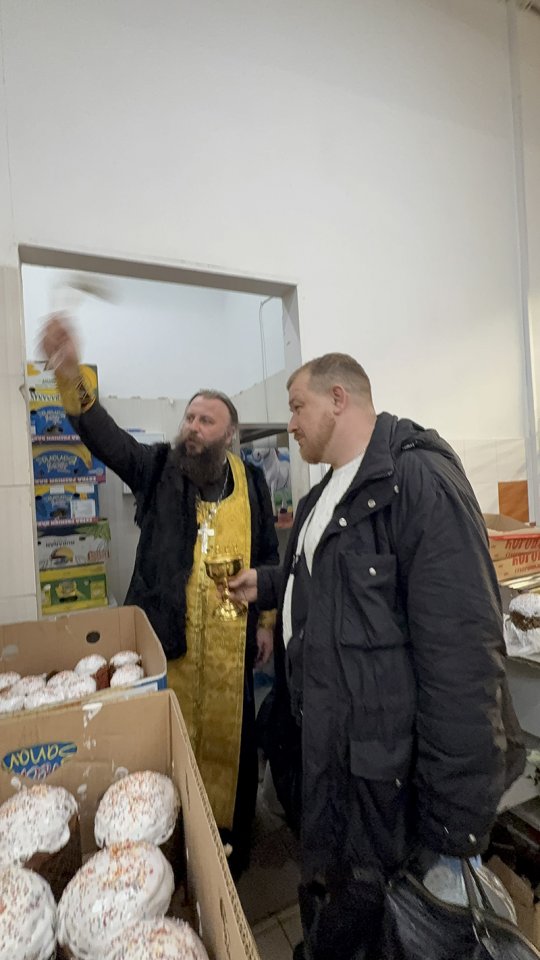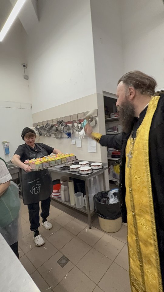 Затем братия храма прибыла в кулинарный цех и пекарню, где были освящены более 15 тысяч Пасхальных куличей и яиц для служителей и жителей Севастополя.