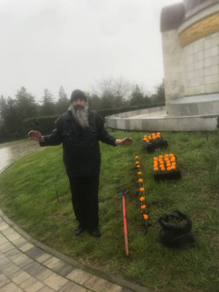 После Богослужения на Сапун-горе, в храме великомученика Георгия Победоносца, усилиями прихода была, традиционно, украшена прихрамывая земля.