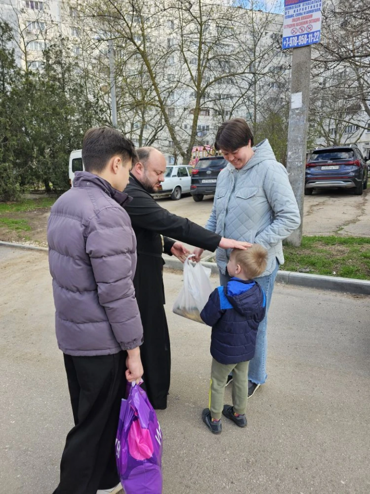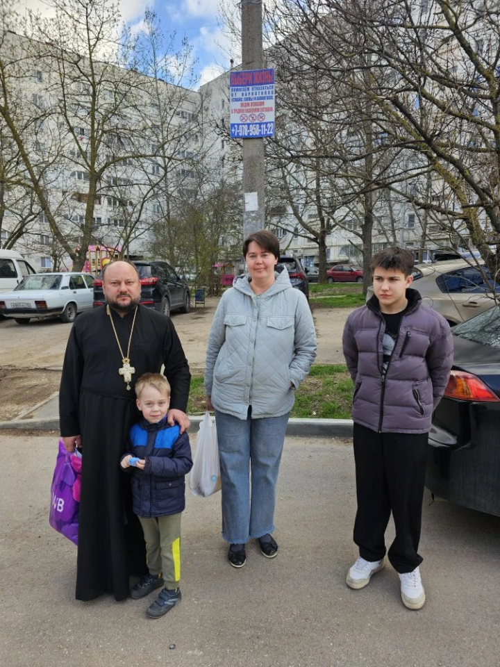 Накануне Пасхи, в Великую субботу, священник Игорь Крылов, настоятель храма святителя Спиридона Тримифунтского, вместе с молодёжью прихода, по традиции, посетил многодетную семью, которой они регулярно помогают. Семье передали продукты к празднику: колбасу, консервы, сливочное и подсолнечное масло, крупы, макароны, яйца и сладости для детей. Забота батюшки и молодых прихожан очень растрогала членов семьи. Как хорошо творить добро на Пасха! Слава Богу за все!