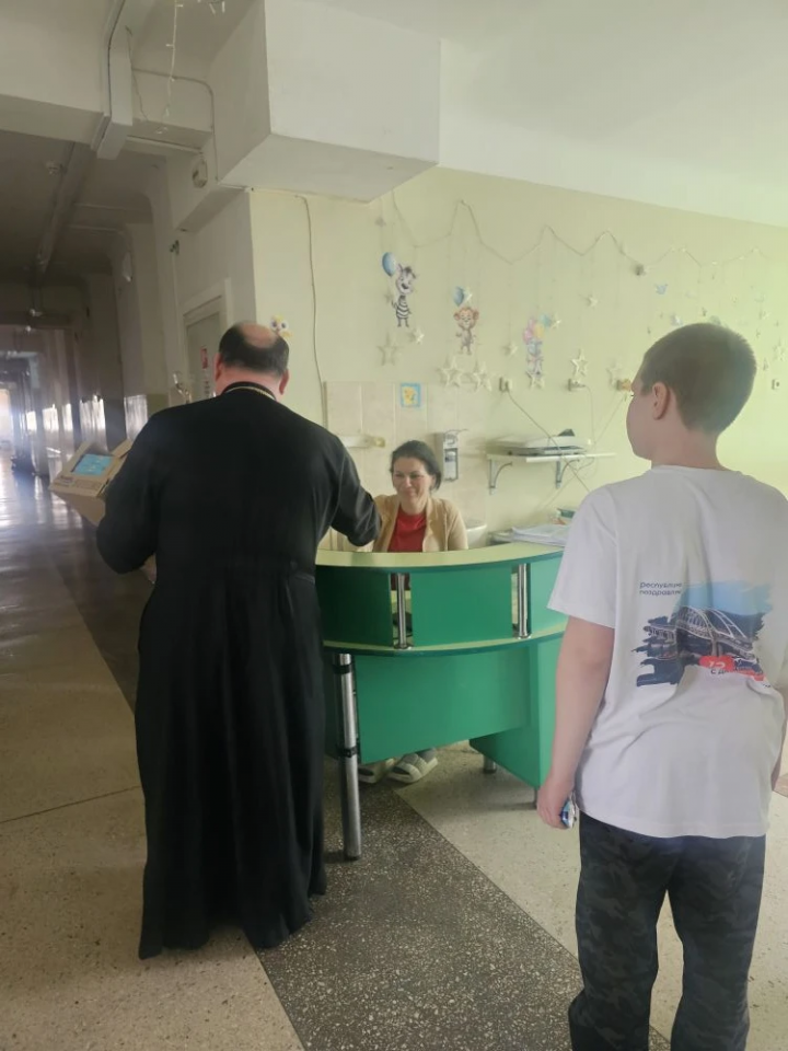 12 апреля настоятель храма святителя Спиридона Тримифунтского иерей Игорь Крылов, с представителями молодёжи прихода, посетил своих подопечных – детей, проходящих курс лечения в Детском больничном комплексе. Батюшка и молодые люди раздали юным пациентам и сотрудникам больницы сладкие подарки: всего охвачено теплой заботой около 200 человек.