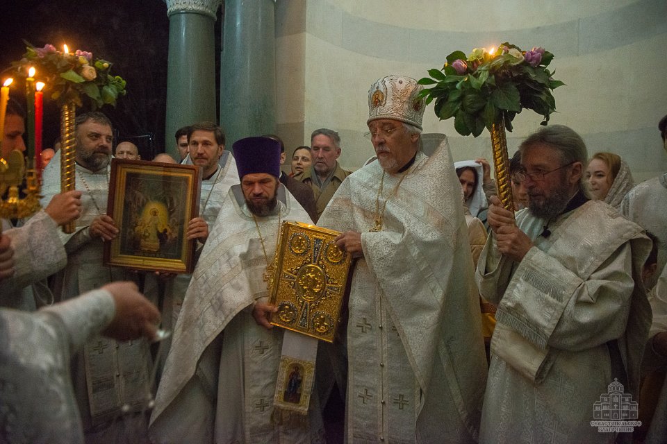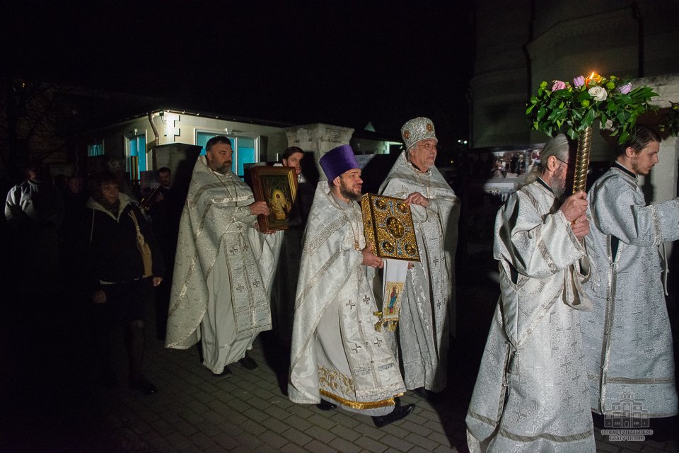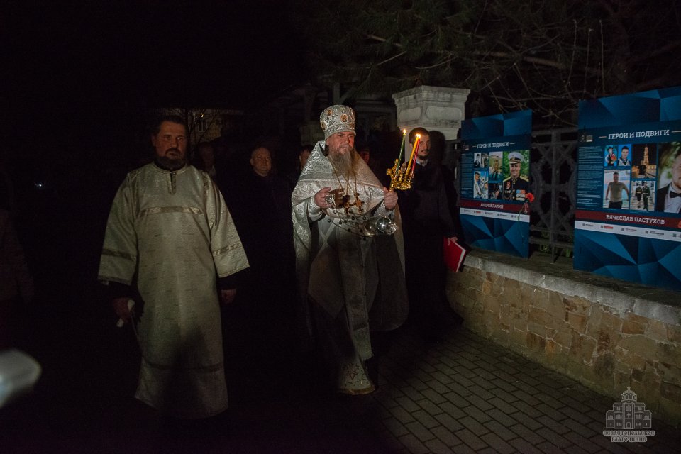 В полночь 12 апреля от Свято-Владимирского собора - усыпальницы адмиралов вышел Пасхальный крестный ход, после которого в верхнем храме собора началось праздничное Пасхальное богослужение.