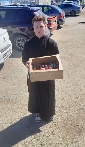 14 апреля, во вторник Светлой седмицы, на Славянском рынке ул. Силаева было многолюдно. Множество малоимущих пришли на бесплатный обед, который приготовили для них православные волонтеры общественной организации «От сердца к сердцу». С пасхальным угощением к людям приехали представители молодежного объединения храма святителя Спиридона Тримифунтского. Ребята приветствовали собравшихся возгласом «Христос Воскресе!», а также раздали людям куличи, крашенки и конфеты.