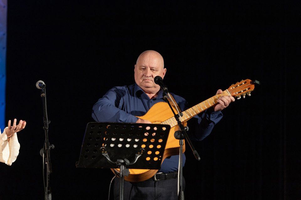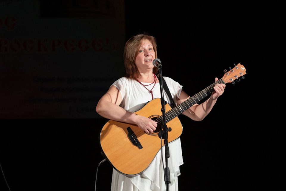 Эдуард Зайцев исполнил ещё одну патриотическую песню, написанную воином СВО, – «Россия», зал принял её аплодисментами. Звучали стихи о Пасхе в авторском исполнении членов Союза писателей России Николая Ильченко и Марины Александровой, которая так же исполнила песню на свои стихи, аккомпанируя себе на гитаре.