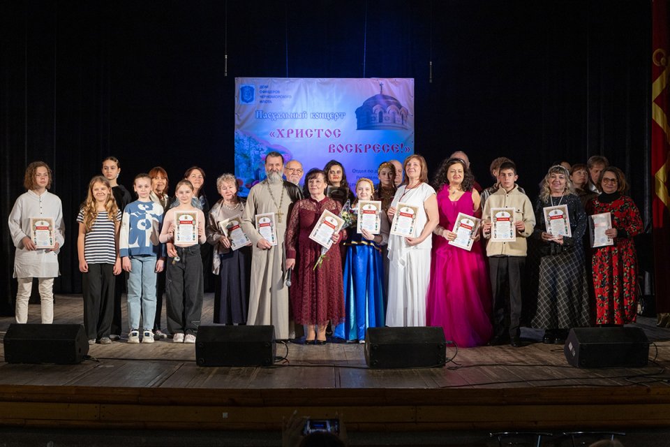 Завершили концерт все участники, хором исполнив тропарь Пасхи «Христос воскресе из мертвых». Отец Сергий вручил выступающим грамоты от благочинного Центрального округа протоиерея Сергия Халюта и Пасхальные куличи.