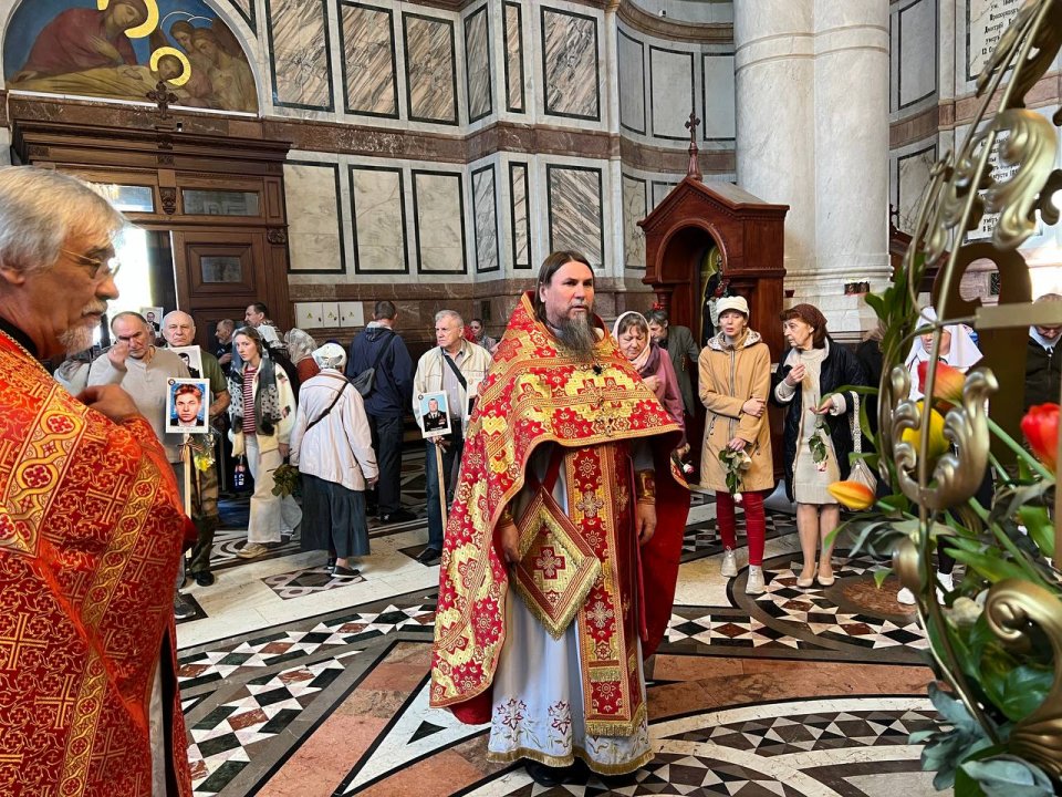 Панихиду отслужил настоятель собора, благочинный Центрального церковного округа протоиерей Сергий Халюта, в сослужении почетного настоятеля собора протоиерея Алексий Тупикова. По окончании богослужения отец Сергий обратился к собравшимся со словами утешения и надежды, призвав всегда молитвенно поминать тех, кто ценой своей жизни остановил страшную беду.