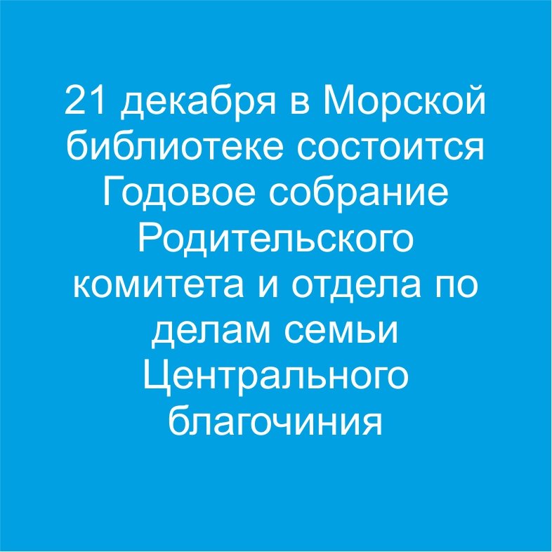21 декабря в Морской библиотеке состоится Годовое собрание Родительского комитета и отдела по делам семьи Центрального благочиния