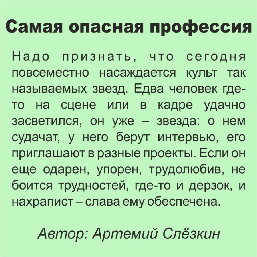Многие рвутся в звезды, штурмуют музыкальные конкурсы и шоу, пробуют себя в кино, осаждают театральные училища и институты. Актеры и актрисы, телеведущие, певцы и певицы, режиссеры, популярные писатели... А ведь люди избрали самую опасную профессию. Опасную с точки зрения воздействия на душу тех, кто соприкасается с их творчеством.